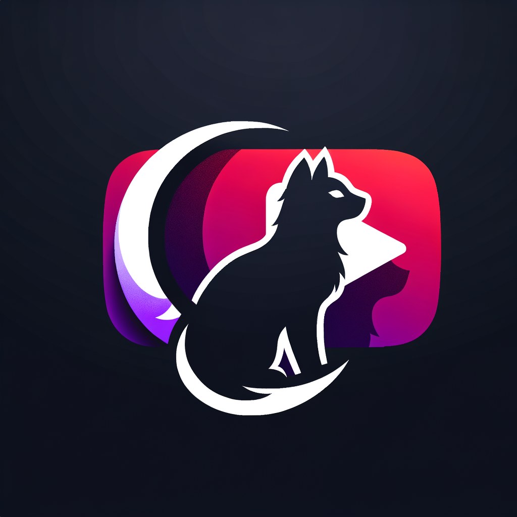 YouTube channel logo 'Wermolf': Minimalist geometric design, cat silhouette with wolf shadow, crescent moon, clean vector style, gradient from blood red to deep purple, modern sleek aesthetic, mysterious but cute vibes
